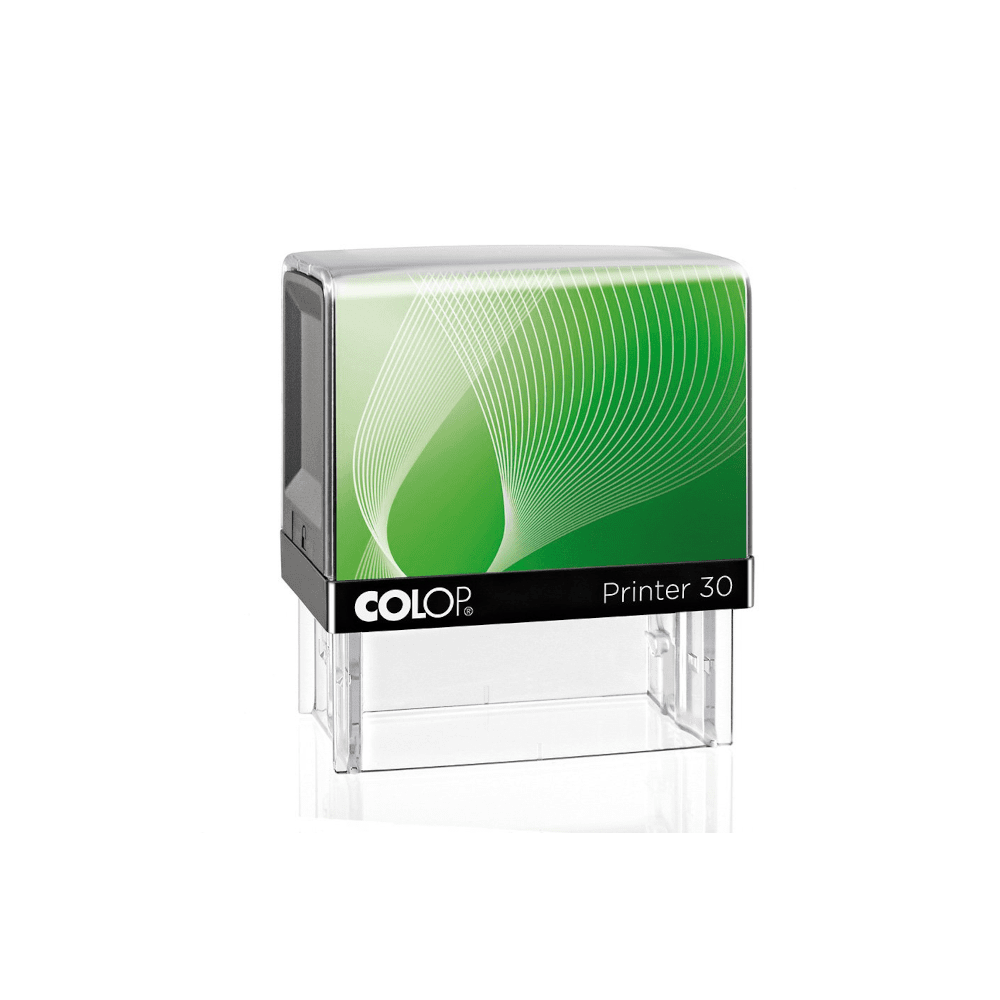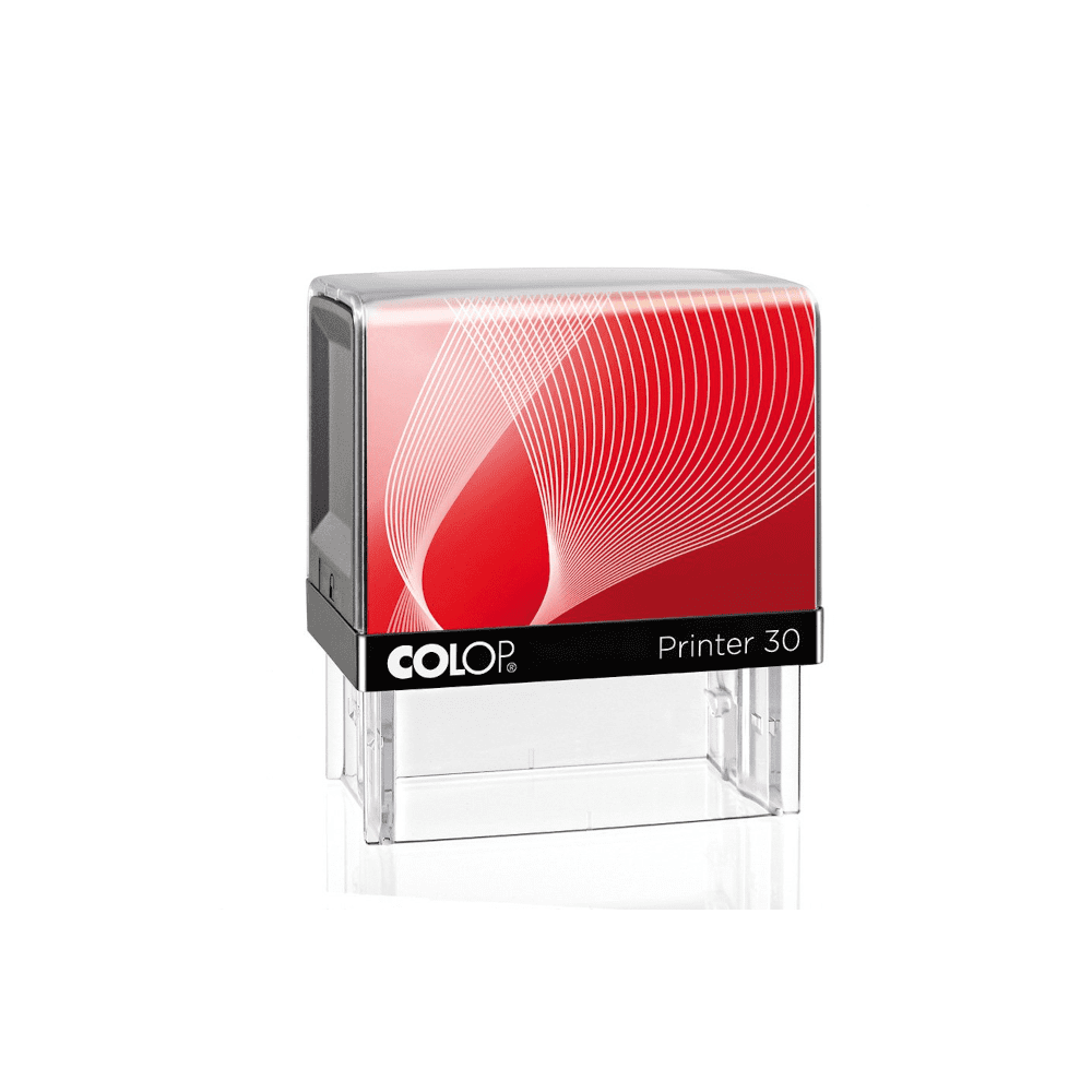 Samonamáčacia pečiatka Colop Printer 30 z rady pečiatok Colop. Vhodná na výrobu menšej firemnej pečiatky. Pri štandardnej veľkosti písma obsiahne cca. 5 riadkov textu.